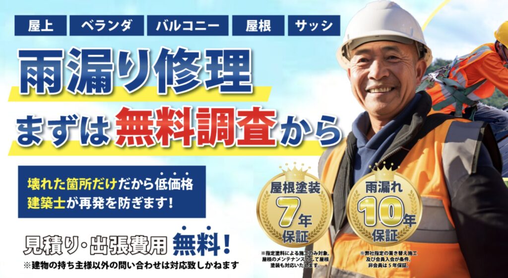 | 主な対応内容 | 雨漏り修理・原因調査・防水工事・応急処置 |