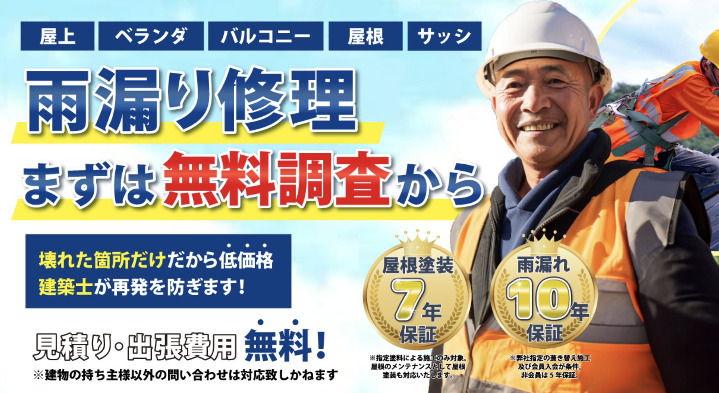 切迫した雨漏りトラブルへの初動対応力が高く評価されています。