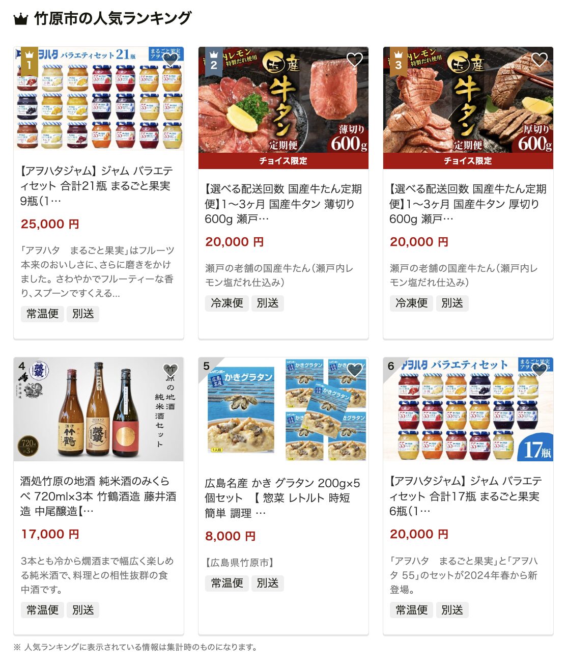 竹原市のおすすめ返礼品ランキング