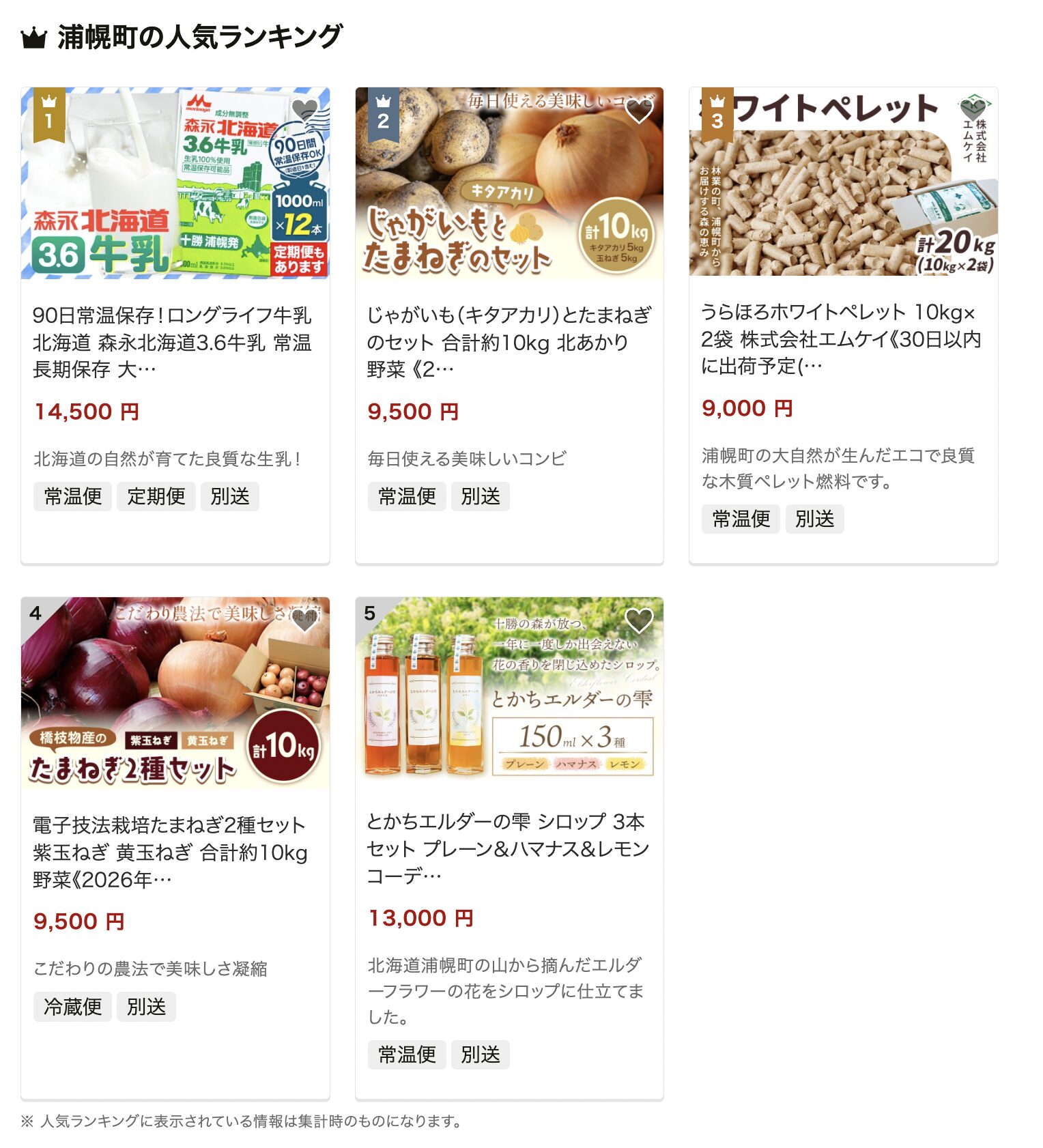 そのほか、玉ねぎの食べ比べセットやエルダーフラワーのシロップなど、北海道・十勝の自然を活かした商品も充実しています。全体としては、“実用性の高い食品+地域ならではの特色ある品”が揃っており、日常生活を豊かにしたい方におすすめの自治体といえるでしょう。