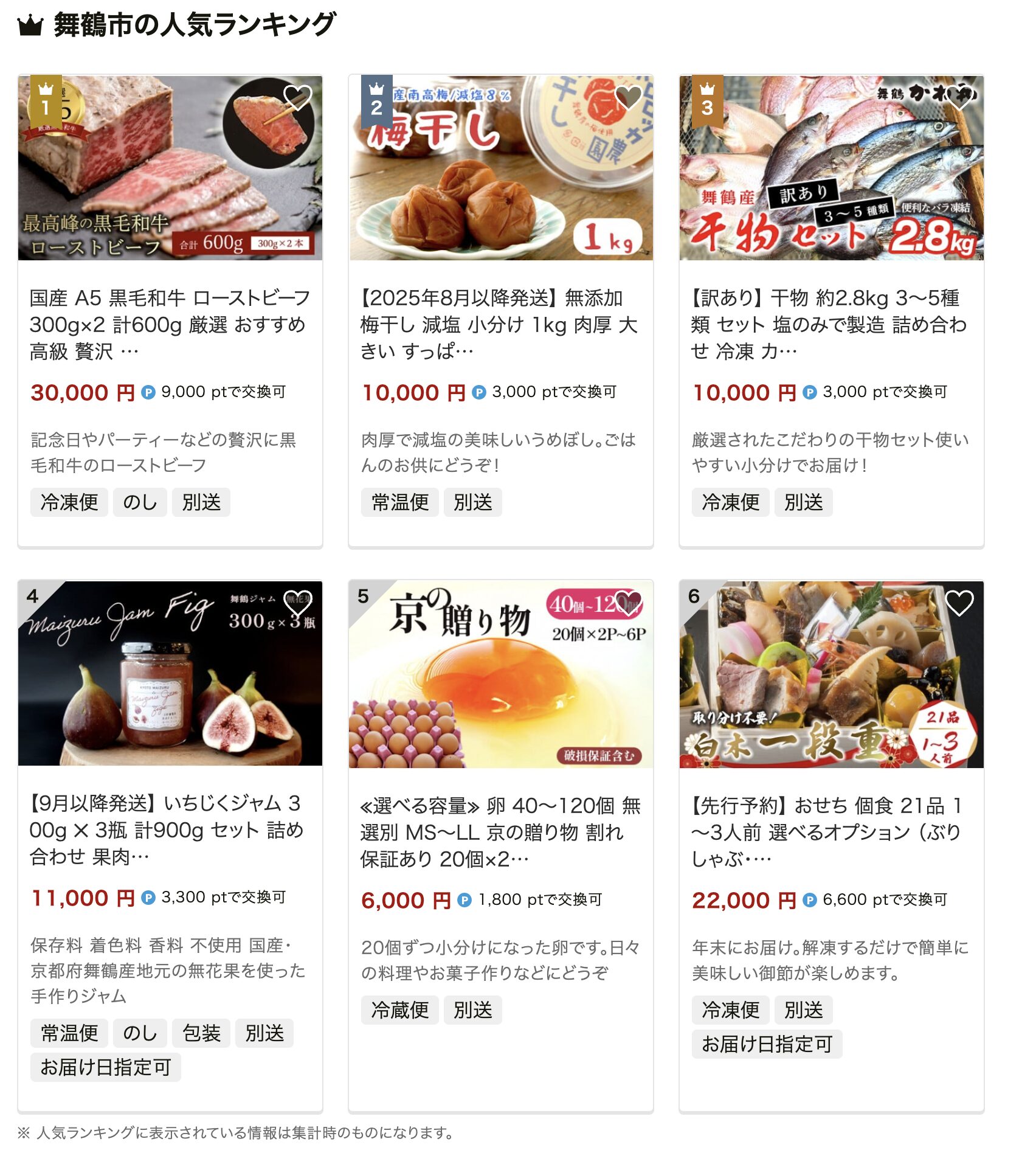 京都府舞鶴市のふるさと納税では、日本海の恵みと豊かな自然が育んだ特産品が人気です。特に、舞鶴港で水揚げされた新鮮な魚介類は高い人気を誇り、京鰆の味噌漬けや干物、カニやカレイの加工品がランキングに名を連ねています。また、舞鶴のブランド牛「舞鶴牛」のすき焼き・しゃぶしゃぶ用のお肉や、ホルモンなどの精肉も人気です。寄付金は、「引き揚げのまち・舞鶴」として知られる歴史的背景を活かした「引揚げの史実の継承及び発信」や、「歴史・文化資源の保全及び活用」といった事業に活用されます。その他、子育て環境の充実や伝統文化の継承など、幅広い選択肢から寄付者が使い道を選ぶことができます。