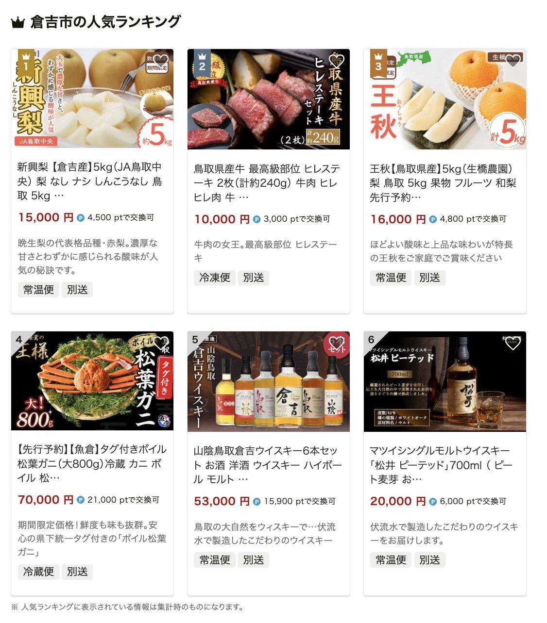 鳥取県倉吉市のふるさと納税返礼品は、豊かな自然の恵みと地元の特産品が充実しています。特に人気なのは、鳥取県産牛の最高級ヒレステーキや、みずみずしい「新興梨」「王秋」といった梨。また、冬の味覚の王様、タグ付きのボイル松葉ガニも期間限定で人気を集めています。さらに、マツイウイスキーなど地元の酒造メーカーが手がけるウイスキーも好評です。寄付金の使い道は多岐にわたり、「倉吉未来づくり基金」として、子育て支援、歴史あるまちなみの保存、観光によるまちの活性化などに活用されています。市民が安心して暮らせるまちづくりに貢献できるのが魅力です。